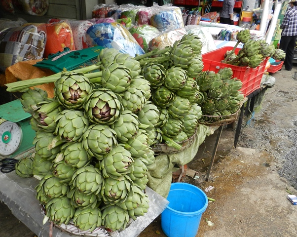 ![]() キク科花野菜のアーティチョーク(Artichoke:朝鮮あざみ)はイタリア、スペイン、フランス、 アメリカなどの欧米野菜地域ならば珍しいものではありませんが、 アジアでは価格が安くないこともあり、全体的にマイナー。 ただしフランスの植民地として歴史が永いベトナムの野菜市場は例外です。 アーティーチョークをどこでもみることができ、多い少いはありますが食生活に根付いています。 アーティーチョークは美容と長寿の花としてフランスの植民地を支配する富裕層に愛されていましたが 近年は脳視神経がクリアーになるポリフェノールのカフェオイルキナ酸(caffeoylquinic acid)豊富な 花野菜としても知られるようになり、認知症など脳神経変性疾患の予防に人気があります。 ベトナム中部の標高1,500mに位置するラムドン省の省都であるダラット(Dalat)は フランス人が避暑地として開拓した土地だけに、いまだに植民地時代の食習慣が強く残っています。 市場にはアーティチョークばかりでなく、ブロッコリ、カリフラワー、コールラビ(Kohlrabi)など 欧米系の野菜が豊富(*中国産が多いかもしれません)。 中でもアーティーチョークはブロッコリーに次ぐ野菜市場のチャンピオン。最も目立ちます。 *ダラットはホーチミン市より北東へ約300キロ。 (写真上下) 市場にあふれるグローブ(globe artichoke :Cynara cardunculus var. scolymus)と 呼ばれるポピュラーな大型種。写真上右はお茶や出汁として需要が多い花弁と茎の削り節. 独特の香りがあるアーティチョークはスターフライ、グリル、マリネー、ピックル、 スープなど、考えられるあらゆる料理法で供されています。 豊富な抗酸化ポリフェノールの保健効果。 子供のころから食べなれた人には忘れられない香り。 イタリアのカンパリ社が製造するチナール(Cynar)は消化器系の健康リキュールとしても 知られ、その香りに病みつきとなる人も少なくありません。 ![]() アーティチョークは地域でいくつもの種類が開発されて形状、色は様々です。 大型でポピュラーなのはフランスのCamus de Bretagne。 アントシアニン豊富で人気のある紫色はPurple of Romagna、Violet de Provenceなどが著名。 アーティチョークの世界の生産量は約160万トン/2020年ですから野菜品種としては 多い方ではありませんが、伝統的な食材として脳神経変性疾患、強精強肝を 目的とする医用愛用者の需要は継続的。 また、装飾用花としてもコアとなる愛好家の需要が絶えません。 近年は生産コスト高騰により、トップのイタリアやスペインなどの生産量が落ちており、 エジプトなど中東や、発祥の地である北アフリカ地域、中南米の生産量が伸びて、 代替生産国となりつつあります。 サラダ野菜の大産地である米国カリフォルニア州では、モントレー郡のカストロヴィールに アーティチョークの熱狂的なファンの存在が知られており、全米の需要を満たす生産量があります。 世界の需要から較べればベストテンにも入りませんが 1965年より今年2025年まで、春か夏にアーティチョーク・フェスティバル (Castroville Artichoke Festival)が盛大に開催されていたました。 残念ながら2025年は開催されず、再会の兆しはありません。 *日本人の愛好家は限定的ですが、首都圏では神奈川県三浦市域が少量を生産。 鎌倉市内の農協直売所で販売されており、コアとなっている愛好家がいます。 (写真上下) このホテルではアーティーチョーク(Artichoke)を前菜で提供します. 芯(ハート)と花弁内の柔らかい部分、茎内部をサラダで食します。 固い外皮がありますからレストランできれいに調理できる人材は 多くないようで、提供できるレストランが限られ、需要が伸びない原因となっています. 写真の前菜はスチームかボイル後に*マリナード(marinade:漬け汁)を 使用したと思われる調理.仄かなワインやビネガーの酸味があります. *漬け汁はビネグレット(sauce vinaigrette:食用油と白ワインやビネガーのソース). (ダラット・パレス・ホテル) (写真下) オーダーメードでアーティチョークをベトナム南部名物カイン・チュア(Canh chua)・ラウ(Lau)に 仕立ててくれた下町の大衆レストラン ![]() (写真上) レストランで供される鍋料理用の生アーティチョークの花弁と茎 ![]() (参考写真)アーティチョークのスペイン料理 スペインではアーティチョークが富裕層に人気. バラエティーに富んだ料理があり、高級レストランの素材として使われます. (生鮮食材研究家:しらす・さぶろう) 「抗酸化作用が最強の天然ブドウ・ポリフェノールのレスべ」 2023/10/07 (広告) ![]() https://www.botanical.jp/item_view.php?item_number=28 レスベはフランス産の天然赤ブドウを原料に日本で初めて作られた ブドウ・レスベラトロール・サプリメント. 最初のモデルの開発を始めてからすでに20年を超えました。 レスべのブドウ・レスベラトロールはイタドリ由来のものや、医薬品目的に 化学合成された合成レスベラトロールとは全く異なる物質。 天然レスベは過剰摂取が不要ですから長期間摂取の安全性や