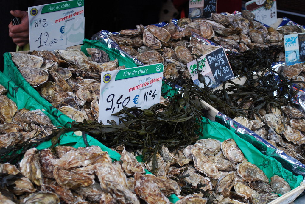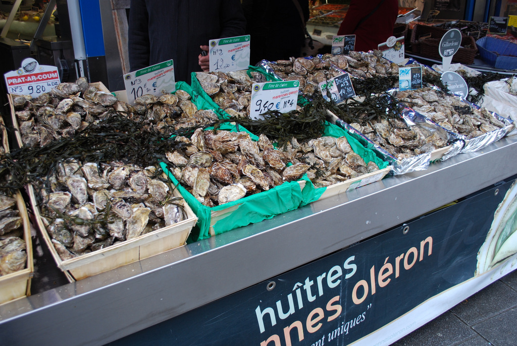 シャラント・マリティム県(Charente-Maritime)ラ・ロシェール(La Rochelle)近郊の マレンヌ・オレロン(Marennes-Oleron)地域から ジロンド河口に近いアルカッション湾(Arcachon Bay)沿いのギュジャン-メストラ (Gujan-Mestras:ジロンド県:Gironde)に至る広大な大西洋沿岸地域は牡蠣の養殖が盛ん。 パリ、ナントから近いリゾート地帯(パリから車で3時間くらい)として ヴァカンス・シーズンには多くの観光客が旬の生牡蠣を楽しみます。 ![]()
