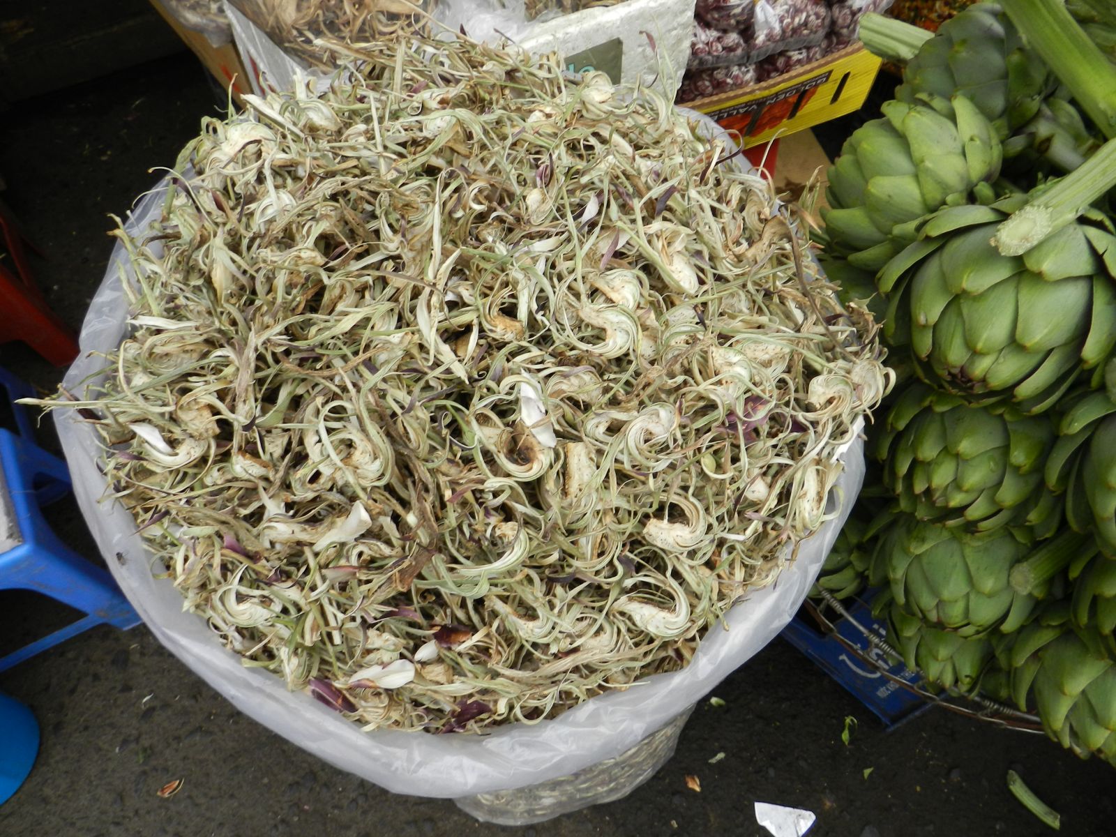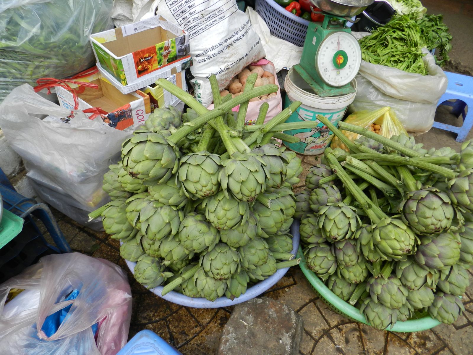 ![]() キク科花野菜のアーティチョーク(Artichoke:朝鮮あざみ)はイタリア、スペイン、フランス、 アメリカなどの欧米野菜地域ならば珍しいものではありませんが、 アジアでは価格が安くないこともあり、全体的にマイナー。 ただしフランスの植民地として歴史が永いベトナムの野菜市場は例外です。 アーティーチョークをどこでもみることができ、多い少いはありますが食生活に根付いています。 アーティーチョークは美容と長寿の花としてフランスの植民地を支配する富裕層に愛されていましたが 近年は脳視神経がクリアーになるポリフェノールのカフェオイルキナ酸(caffeoylquinic acid)豊富な 花野菜としても知られるようになり、認知症など脳神経変性疾患の予防に人気があります。 ベトナム中部の標高1,500mに位置するラムドン省の省都であるダラット(Dalat)は フランス人が避暑地として開拓した土地だけに、いまだに植民地時代の食習慣が強く残っています。 市場にはアーティチョークばかりでなく、ブロッコリ、カリフラワー、コールラビ(Kohlrabi)など 欧米系の野菜が豊富(*中国産が多いかもしれません)。 中でもアーティーチョークはブロッコリーに次ぐ野菜市場のチャンピオン。最も目立ちます。 *ダラットはホーチミン市より北東へ約300キロ。 (写真上下) 市場にあふれるグローブ(globe artichoke :Cynara cardunculus var. scolymus)と 呼ばれるポピュラーな大型種。写真上右はお茶や出汁として需要が多い花弁と茎の削り節. 独特の香りがあるアーティチョークはスターフライ、グリル、マリネー、ピックル、 スープなど、考えられるあらゆる料理法で供されています。 豊富な抗酸化ポリフェノールの保健効果。 子供のころから食べなれた人には忘れられない香り。 イタリアのカンパリ社が製造するチナール(Cynar)は消化器系の健康リキュールとしても 知られ、その香りに病みつきとなる人も少なくありません。 ![]() アーティチョークは地域でいくつもの種類が開発されて形状、色は様々です。 大型でポピュラーなのはフランスのCamus de Bretagne。 アントシアニン豊富で人気のある紫色はPurple of Romagna、Violet de Provenceなどが著名。 アーティチョークの世界の生産量は約160万トン/2020年ですから野菜品種としては 多い方ではありませんが、伝統的な食材として脳神経変性疾患、強精強肝を 目的とする医用愛用者の需要は継続的。 また、装飾用花としてもコアとなる愛好家の需要が絶えません。 近年は生産コスト高騰により、トップのイタリアやスペインなどの生産量が落ちており、 エジプトなど中東や、発祥の地である北アフリカ地域、中南米の生産量が伸びて、 代替生産国となりつつあります。 サラダ野菜の大産地である米国カリフォルニア州では、モントレー郡のカストロヴィールに アーティチョークの熱狂的なファンの存在が知られており、全米の需要を満たす生産量があります。 世界の需要から較べればベストテンにも入りませんが 1965年より今年2025年まで、春か夏にアーティチョーク・フェスティバル (Castroville Artichoke Festival)が盛大に開催されていたました。 残念ながら2025年は開催されず、再会の兆しはありません。 *日本人の愛好家は限定的ですが、首都圏では神奈川県三浦市域が少量を生産。 鎌倉市内の農協直売所で販売されており、コアとなっている愛好家がいます。 (写真上下) このホテルではアーティーチョーク(Artichoke)を前菜で提供します. 芯(ハート)と花弁内の柔らかい部分、茎内部をサラダで食します。 固い外皮がありますからレストランできれいに調理できる人材は 多くないようで、提供できるレストランが限られ、需要が伸びない原因となっています. 写真の前菜はスチームかボイル後に*マリナード(marinade:漬け汁)を 使用したと思われる調理.仄かなワインやビネガーの酸味があります. *漬け汁はビネグレット(sauce vinaigrette:食用油と白ワインやビネガーのソース). (ダラット・パレス・ホテル) (写真下) オーダーメードでアーティチョークをベトナム南部名物カイン・チュア(Canh chua)・ラウ(Lau)に 仕立ててくれた下町の大衆レストラン ![]() (写真上) レストランで供される鍋料理用の生アーティチョークの花弁と茎 ![]() (参考写真)アーティチョークのスペイン料理 スペインではアーティチョークが富裕層に人気. バラエティーに富んだ料理があり、高級レストランの素材として使われます. (生鮮食材研究家:しらす・さぶろう) 「抗酸化作用が最強の天然ブドウ・ポリフェノールのレスべ」 2023/10/07 (広告) ![]() https://www.botanical.jp/item_view.php?item_number=28 レスベはフランス産の天然赤ブドウを原料に日本で初めて作られた ブドウ・レスベラトロール・サプリメント. 最初のモデルの開発を始めてからすでに20年を超えました。 レスべのブドウ・レスベラトロールはイタドリ由来のものや、医薬品目的に 化学合成された合成レスベラトロールとは全く異なる物質。 天然レスベは過剰摂取が不要ですから長期間摂取の安全性や