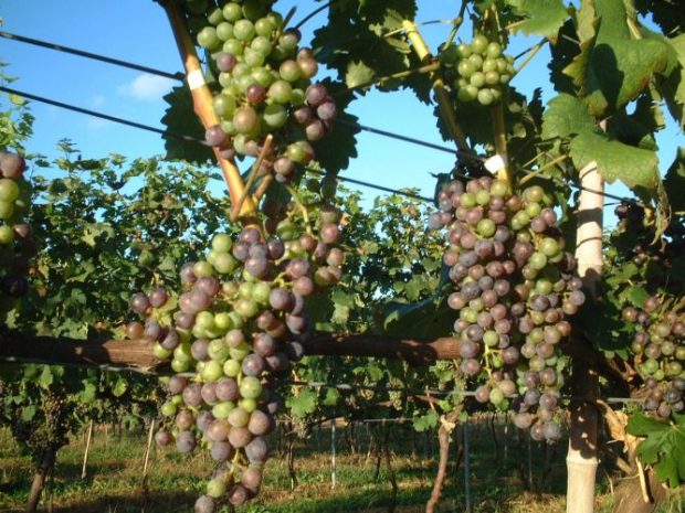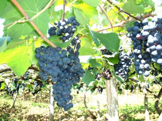 ワイン用には米国原種(Vitis labrusca)の甘いコンコード(concord:黒色ブドウ)、