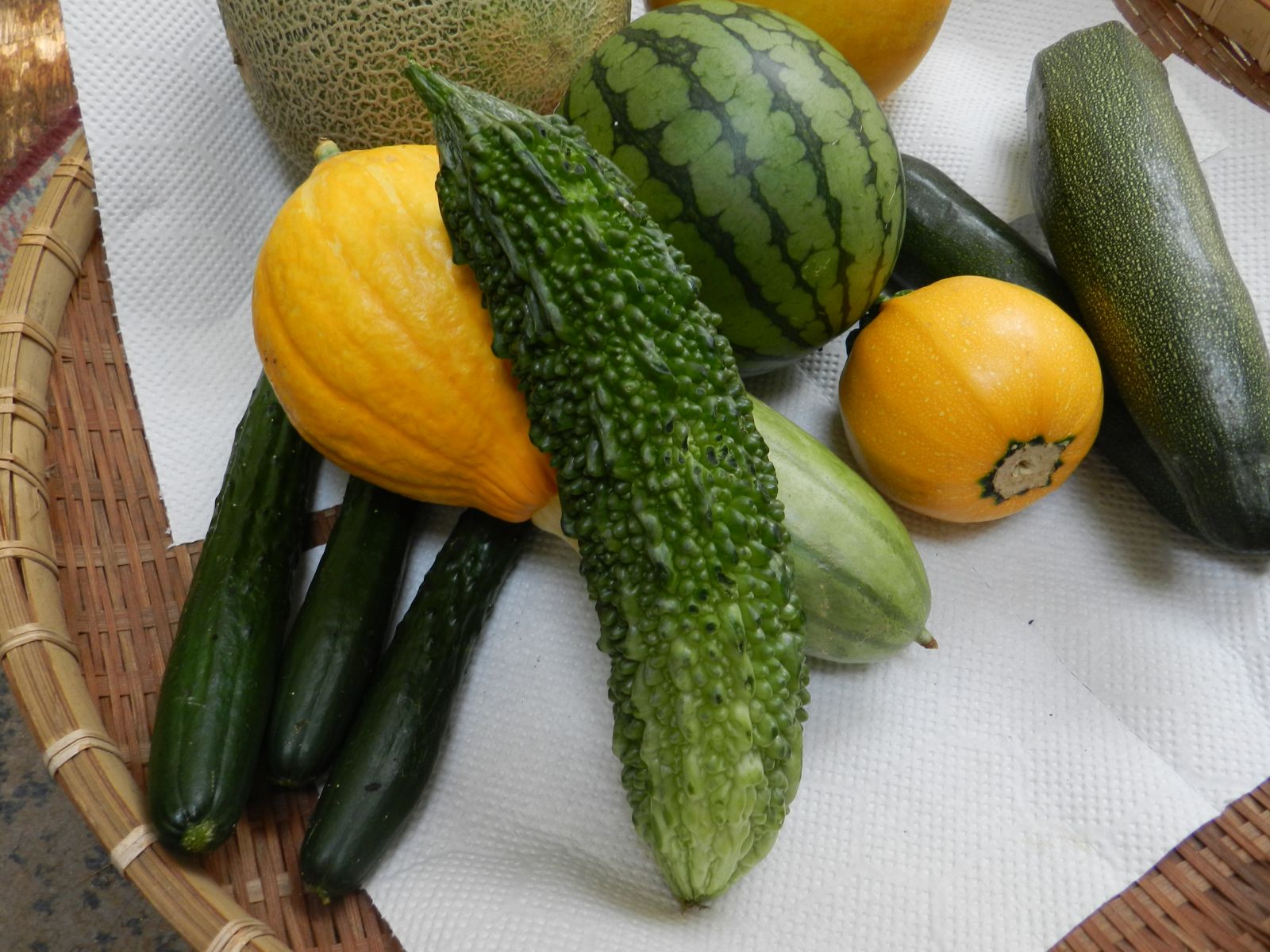 冬瓜(とうがん)、ゴーヤー、南瓜(かぼちゃ)、ヘチマ類があります。