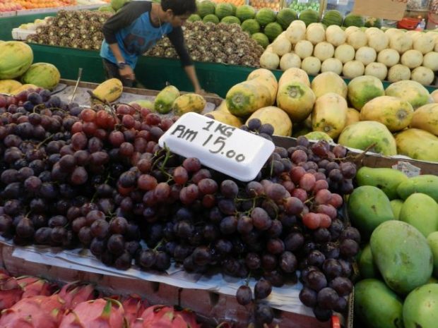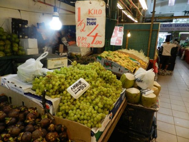 上の写真はマレーシアの黒ブドウ.15リンギ/kgは約450円ですから物価比では超高価.