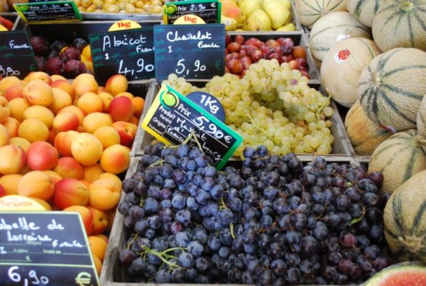 写真上下の黒マスカットは6.50€(ユーロ)旬のシーズンで高めだそう