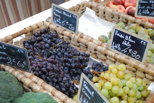写真上下の薄黄色マスカットはフランス産Fendant(Chasselas blanc)6.50€(ユーロ) (